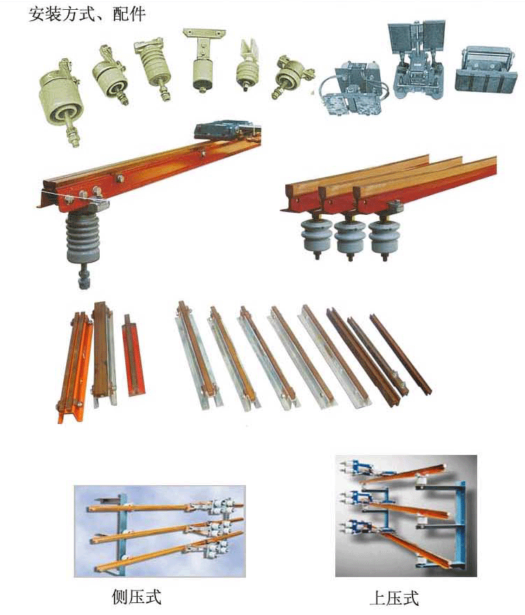 滑触线的安装方式,一般常用的为上部滑触和下部滑触二种,也可根据用户要求,采用其它安装方式。