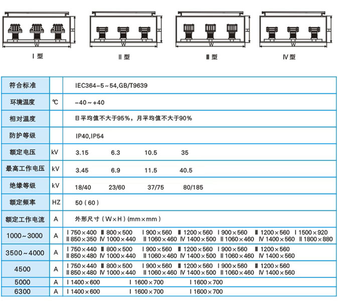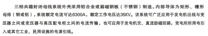 注: 1.母线外壳防护等级打IP54,可消除外界潮气、灰尘及外物引起的接地故障。 2.在系统两端或重要部位可设置观察窗、温度警示标记、或测温远程监控装置等,运行维护方便。 3.母线导体选用上等高强度打爬距绝缘子支撑,使系统具有较高的抗短路电动性能,合理的绝缘子支撑间距的设置,充分避免了系统共震的危险,全连续外壳并多点接地方式杜绝了人身触电危险。