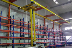 轻型起重标准组件仓储起重机*重要的特点在于,能够*充分地利用室内空间高度、进库、出库、运输和存取经过一道工序完成,不需要梯子和叉车,也不需要其他辅助工具。